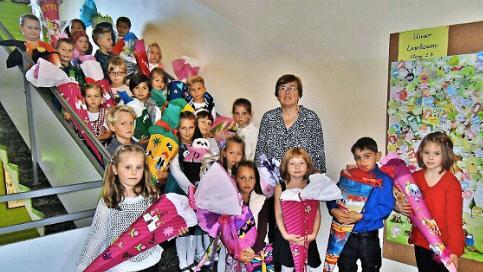 Schulleiterin Gertrud Tischer gibt den Abc-Schützen und ihren Eltern gleich für den ersten Tag wichtige Hausaufgaben auf: Um ausgeschlafen zu sein, sollen die Schüler künftig immer um sieben Uhr ins Bett gehen, gut frühstücken und sich dem Wetter passend anziehen. Sie sollen ihre Schultasche in Ordnung halten und Hausaufgaben machen. Auf die nagelneuen Bücher, die es in diesem Jahr dem neuen Lehrplan entsprechend gibt, sollen sie besonders gut aufpassen, damit die Schüler im kommenden Jahr auch noch ihre Freude daran haben. "Lobt eure Kinder!"Rektorin Gertrud Tischers Hausaufgabe für die Eltern