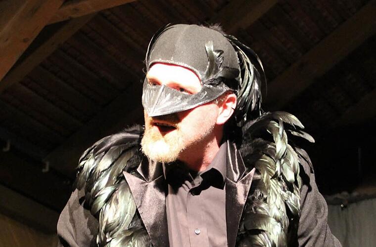 Markus Veith hat die Geschichten von Edgar Allan Poe, dem Raben-Vater der fantastischen Literatur, dem Meister der Kriminal- und Gruselgeschichten, in Reime gefasst. Er beginnt mit dem Gedicht "Der Rabe", aus dessen erster Zeile sich auch der Titel des Stücks herleitet. Plötzlich ist er da, der Rabe, das Flatterwesen das sich unvermittelt ins Haus geschlichen hat. Raben gelten als Galgenvögel, als böse Wesen, dabei ist längst bewiesen, was der Vogel auf dem Kasten hat, erfährt das Publikum.