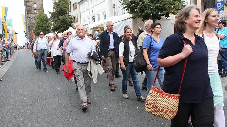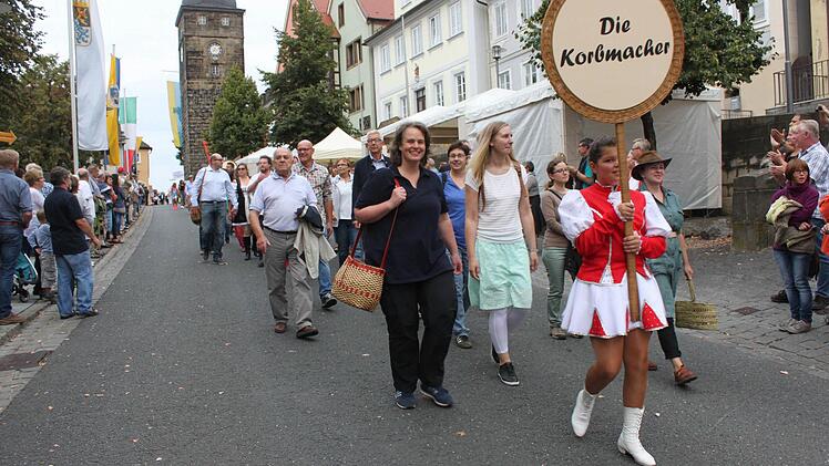 Mit dem Einzug der Mitwirkenden und Gäste begann das Festwochenende in der Kreisstadt. Ein Höhepunkt wird die Krönung der neuen Korbstadtkönigin sein.