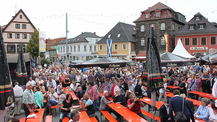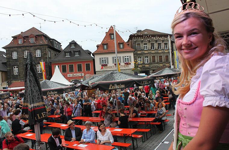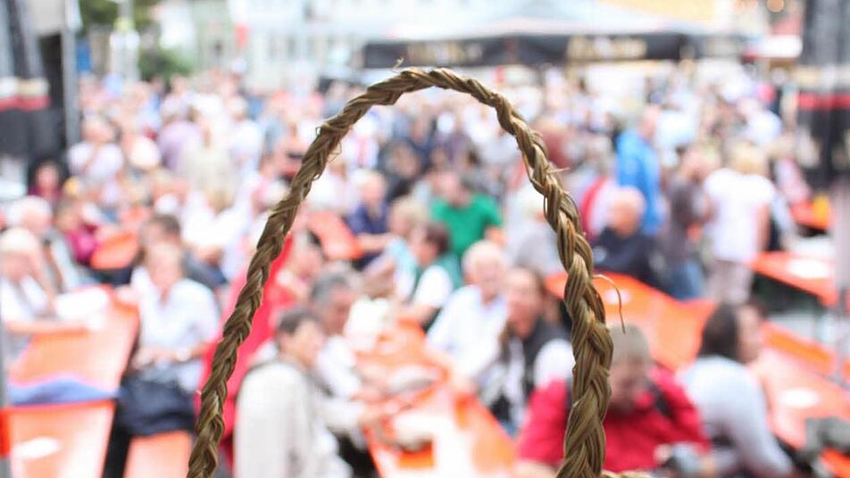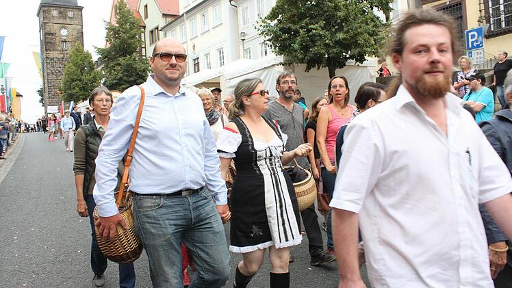 Traditionell waren beim Einzug vom Oberen Tor auf den Marktplatz alle Mitwirkenden und Gäste vertreten. Die Zapfendorfer Mädchengarde und der Fanfarenzug der St.-Georgs-Pfadfinder führten die Reihen an. Der Marktplatz füllte sich bald, an den Buden wurde Deftiges zur Brotzeit verkauft. Während einige Flechthandwerker noch ihre Stände für die beiden Markttage herrichteten, wurden oben auf dem Hauptpodium gleich drei Fässer Bier gleichzeitig angestochen. Die drei Brauerei-Chefs standen dabei den Akteuren zur Seite. Neben Bürgermeister Andreas Hügerich hantierten die neue Landesinnungsmeisterin des Flechthandwerks, Nina-Regina Nötzelmann, und Hauptamtsleiter Manfred Diller erfolgreich mit den Zapfhähnen.
