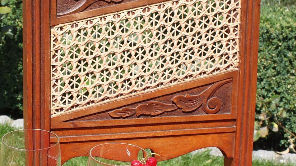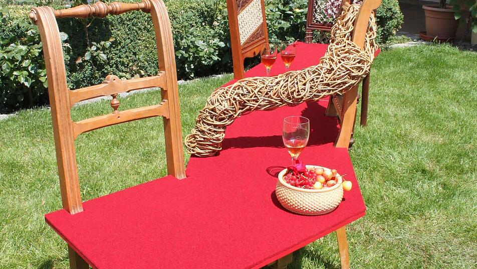 Den Traumberuf gefunden Mitschülerin Marion Stanko-Thonfeld wählte als Abschlussarbeit ebenfalls eine Sitzgelegenheit, doch unterschiedlicher könnten die Entwürfe kaum sein. Die 44-Jährige, die aus dem Raum Gera an die Lichtenfelser Berufsfachschule kam, verband vier alte Flechtstühle mit einem roten, filzbezogenen Element und setzte bei den ausgeflochtenen Sitzflächen beziehungsweise Rückenlehnen verschiedene Techniken und Materialien ein. So entstand ein stilvolles Ensemble, bei dem die einzelnen Stühle aber auch voneinander getrennt benutzt werden können. Ihr im Garten der Schule aufgestelltes Werk krönte die Absolventin mit einigen Gläsern sommerlicher Drinks und Früchten in einer Feinflechtschale - letztere allerdings nicht selbst gefertigt.