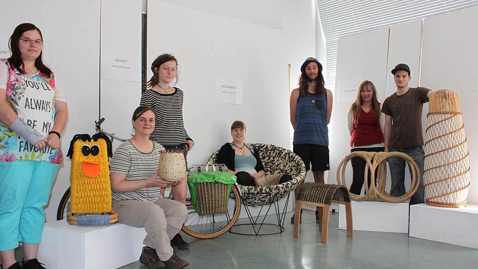 Yannick Schnapp aus Haßfurt arbeitet gerne mit Holz. Für seinen u-förmigen Hocker hat er Buchenbretter über Wasserdampf geformt. Die Sitzfläche ist aus geschälten Weiden-Staken, die mit ungeschälten Weidenruten ausgeflochten wurden.