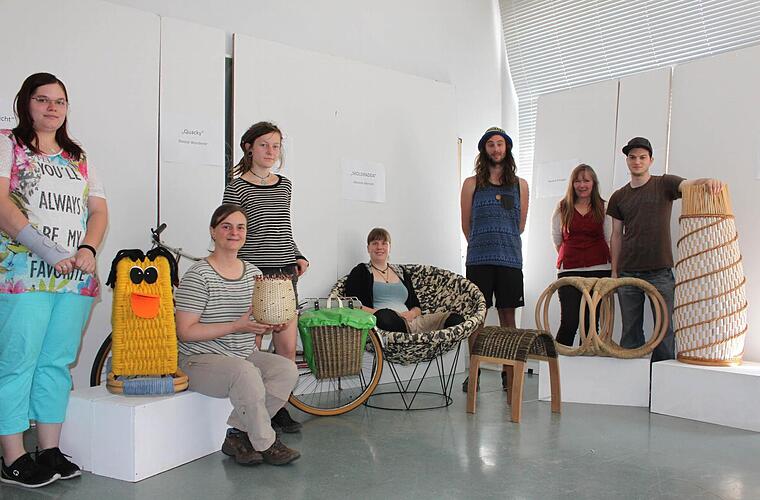 Sieben Absolventen der Lichtenfelser Berufsfachschule präsentieren ihre Abschlussstücke.