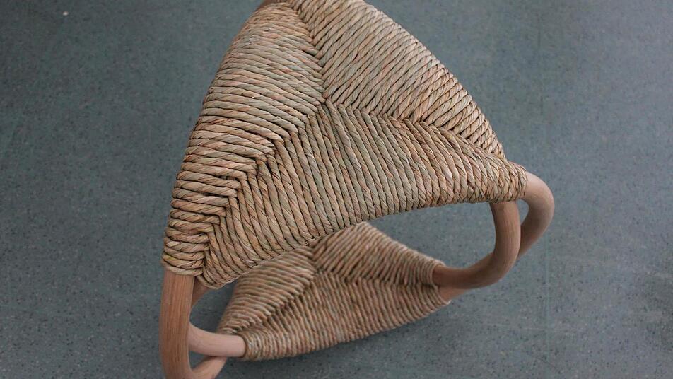 Johanna Wagner hat puristische, kreisförmige Hocker aus Manau-Rohr entwickelt, die quasi endlos aneinandergereiht und wenigen Handgriffen verbunden werden können. Für die Sitzfläche verwendete sie robuste Binsenschnur. Für die Mathematisch-Technische Assistentin war die Ausbildung eine Art Umschulung. "Ich habe vorher hauptsächlich programmiert", berichtet sie. Da wisse man am Ende des Tages nicht so recht, was man gemacht hat. Beim Flechten ist das etwas anderes.