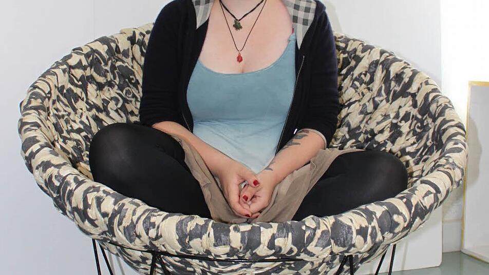Einen Sessel zum Lümmeln hat Deborah Albrecht gemacht, und dazu den Rahmen eines alten Trampolins "verschwinden" lassen. Einsatz an der Nähmaschine gehörte dazu: Sie hat insgesamt 150 Meter Stoffschlauch verflochten, den sie selbst genäht und mit Polstermaterial ausgestopft hat.