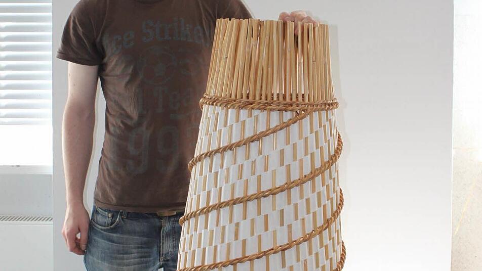 Die meisten möchten den Schritt in die Selbstständigkeit wagen. Nur für einige war es die erste Ausbildung, manche haben vor einem anderen beruflichen Hintergrund das Flechten für sich entdeckt. Die Produkte, die sie als Bestandteil ihrer Gesellenprüfung hergestellt haben, haben sowohl Nutzwert als auch dekorativen Charakter. Da ist zum Beispiel die Standleuchte, bei deren Form sich Sebastian Schiepe aus Wittenberg von einer alten Fischreuse hat inspirieren lassen. Seine "Glow Rocket" ist aus Rattanrohr und mit Japan-Papier ausgeflochten. Die Idee möchte er zur Serienreife bringen.