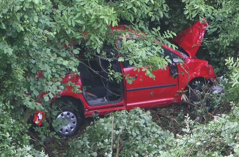 Eine Frau ist mit ihrem Fahrzeug in der Nacht zum Mittwoch über das Staffelberg-Plateau in Bad Staffelstein etwa 50 Meter in die Tiefe gestürzt. Die 40-Jährige blieb nahezu unverletzt. Der Polizei sagte sie, sie habe die Kante des Abhangs im Nebel übersehen.