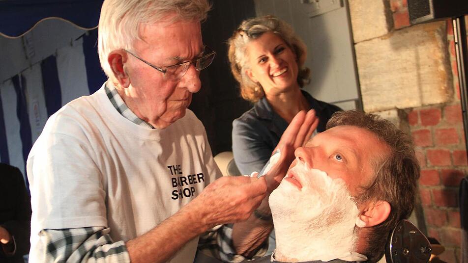 Neben der Bambergerin konnte auch Friseur Heik Engelhardt von "The Barber Shop" aus Coburg und sein 86-Jähriger Vater Willi für die Aktion gewonnen werden. Mit seiner Souveränität und beinahe lebenslanger Erfahrung sollte sich gerade der Senior als wahrer Meister der scharfen Klinge erweisen.