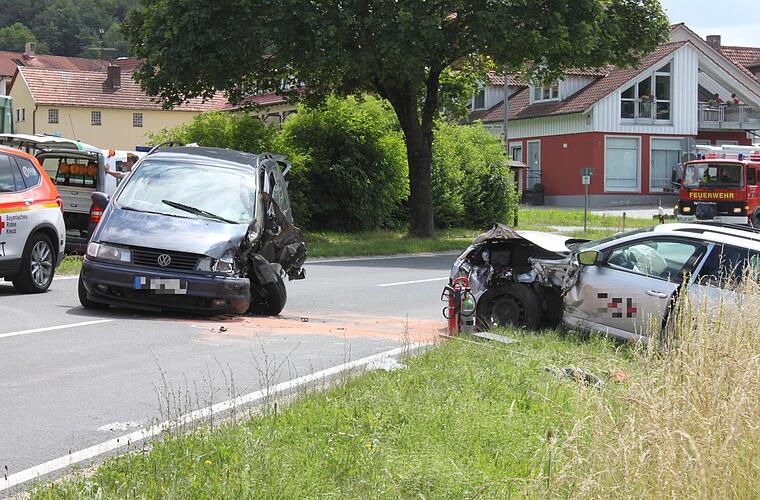 Schwabthal bei Bad Staffelstein (Landkreis Lichtenfels) in Richtung Frauendorf. Aus nicht geklärter Ursache ist der 41-jährige Fahrer eines VW Sharan aus dem Landkreis Lichtenfels in der dortigen leichten Linkskurve auf die Gegenfahrbahn gekommen. Der Wagen stieß mit einem entgegenkommenden Skoda zusammen. Am Steuer dieses Firmenwagens saß ein 61-Jähriger aus dem Landkreis Bamberg. Beide Männer waren allein im Auto und wurden mit Verletzungen ins Krankenhaus gebracht.