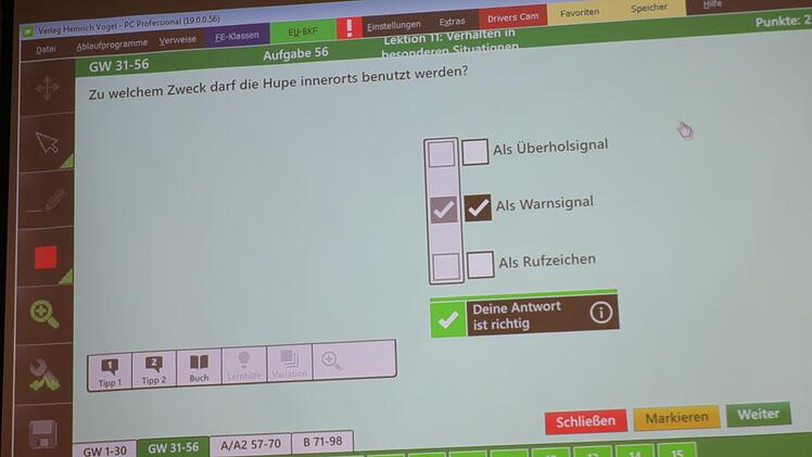 Zu Beginn der Veranstaltung im Mehrzweckraum der Adam-Riese-Halle waren es überwiegend ältere Verkehrsteilnehmer, die diese Chance nutzten. Im weiteren Verlauf der sechsstündigen Infotags kamen viele jüngere Besucher, teils ganze Familien. Erschrocken sind die "Testpersonen", die sich eine Rauschbrille aufsetzten: Schon bei 0,8 Promille schwankten sie deutlich, das Gehen auf einer geraden Linie war fast nicht möglich.