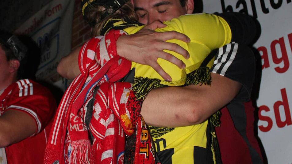 "Jägermeister, Jägermeister", scheinen die drei jungen Männer zu skandieren. Es ist laut und sie singen undeutlich. Eigentlich grölen sie und eigentlich singen sie auch nicht vom Jägermeister, sondern vom Rekordmeister. Klingt ähnlich, man muss es halt nur vorher wissen, um es hinterher auch so herauszufiltern. "3:1 gewinnt Bayern. Weil sie gereift sind an der Niederlage gegen Chelsea (2012)", begründet Fan Michael Hofmann. Auch Tatjana Woitzik ist Fußball-Fan. "Letztes Jahr war´s für mich eine Katastrophe", erzählt sie. Letztes Jahr, das war die Sache mit der unnötigen Endspielniederlage der Bayern gegen Chelsea, dieses Spiel, bei dem man als Zuschauer binnen zweier Halbzeiten um Jahre altert.