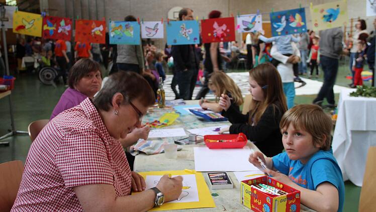 Viele Aktionen boten das gemeinsame Erlebnis. Beispielsweise beim Malwettbewerb der Regens-Wagner-Schule zum Thema Friedenstaube. Mit einem Partner sollte gemeinsam eine Friedenstaube gestaltet werden. Die Ergebnisse dieser kreativen Arbeit konnten dann aneinandergereiht auf einer großen Wäscheleine bewundert werden. Die schönsten Bilder werden nicht nur prämiert, sondern sind demnächst auch in der Sparkasse zu sehen.