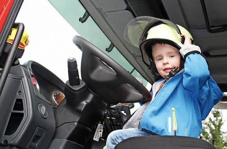Im Außenbereich war die Jugendfeuerwehr mit der Drehleiter und mehreren Einsatzfahrzeugen vertreten. Wer wollte, konnte schon einmal in einem Einsatzfahrzeug Platz nehmen.