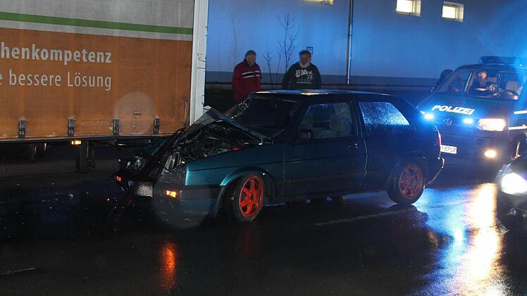 Er habe den Lastwagen, der nicht beleuchtet gewesen sei, zu spät gesehen, sagte der Fahrer des Golfs. Zwar habe er noch versucht zu bremsen und dem Lkw auszuweichen, aber auf der nassen Fahrbahn konnte er den Zusammenprall nicht mehr verhindern, schilderte der 22-Jährige weiter. Der aus Klosterlangheim stammende Unfallverursacher sagte, dass er unverletzt sei.