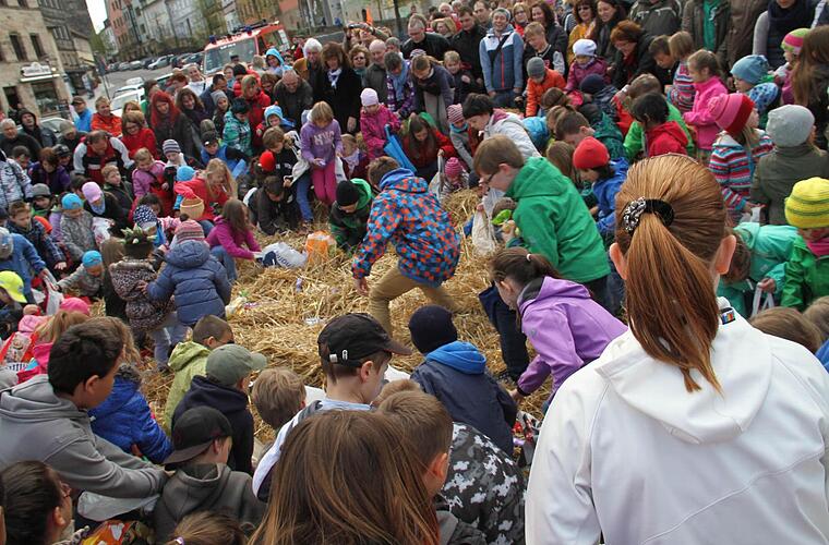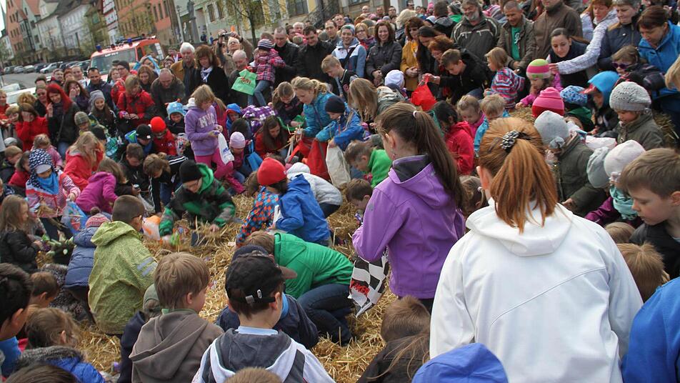 Dichtes Gedränge herrschte am Samstag auf dem Lichtenfelser Marktplatz. Zahlreiche Kinder waren mit ihren Eltern gekommen, um das größte Osternest Oberfrankens zu plündern.