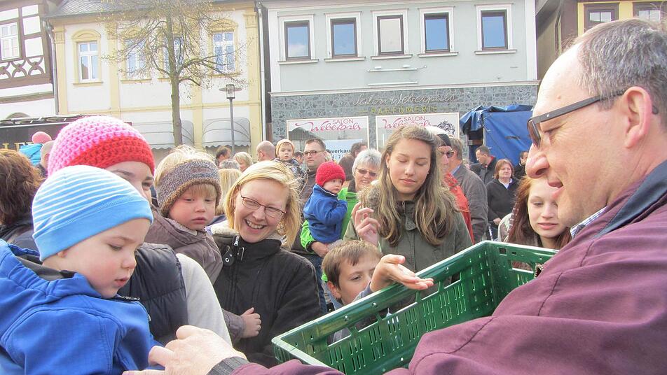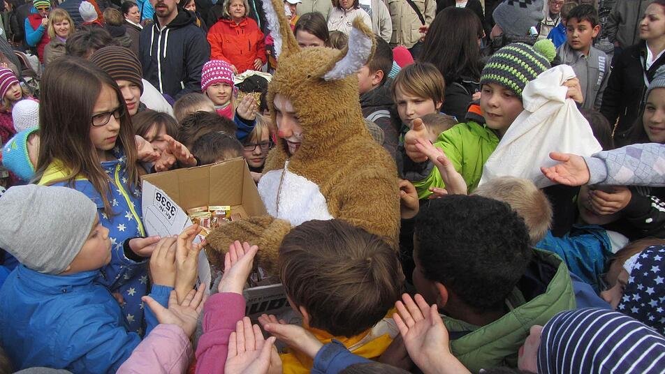 Rund 1000 Tafeln Schokolade Die Bilanz der Aktion kann sich auch heuer sehen lassen: "Wir haben 800 Osterhasen, 750 Ostertüten, rund 1000 Tafeln Schokolade und vieles mehr in beiden Nestern verteilt", sagt Schiffgen. Damit waren es knapp die Hälfte mehr Süßigkeiten und Präsente als 2013. Auch bei den Besucherzahlen dürfte es einen neuerlichen Rekord gegeben haben: Gefühlte 500 bis 600 Kinder und Erwachsene hat die Aktion auf dem Lichtenfelser Marktplatz gelockt. Sie ist mittlerweile weit über die Grenzen der Korbstadt hinaus bekannt und zieht weite Kreise.