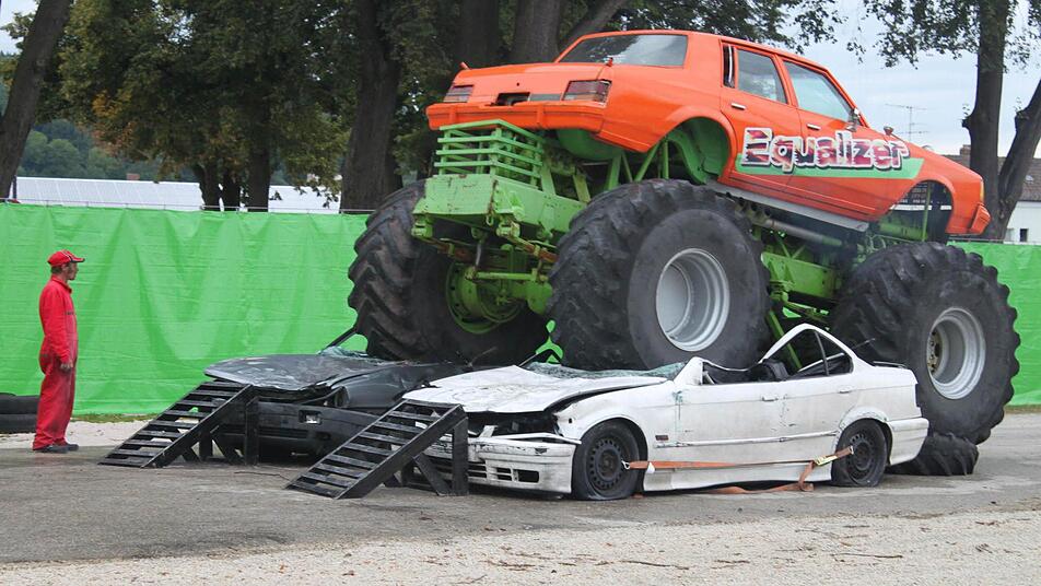 Dass ein 8,5 Tonnen schweres und mit 480 PS versehenes Vehikel ein Auto platt machen kann, sobald es darüber fährt, ist nicht verwunderlich. Und verwundert hat es Tina Baum und ihre Schwester Sylvia Baum nicht. "Was soll schon sonst Anderes passieren?", fassten die beiden Lichtenfelserinnen das Gesehene zusammen. Die beiden Frauen waren zwei Personen eines zirka 120 Köpfe zählenden Publikums.