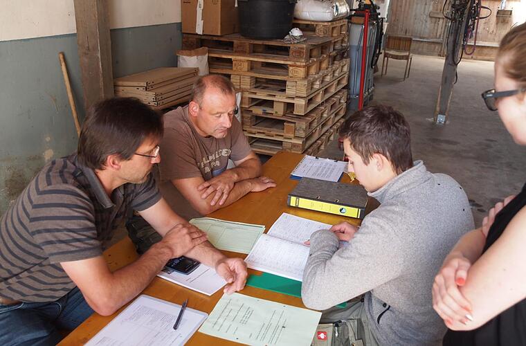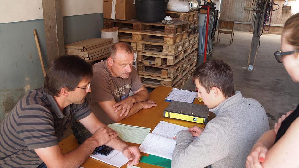 "Die Absolventen können wählen, ob sie am Rind oder Schwein geprüft werden", erläutert Thomas Schwarzmann, Hausherr, Prüfer und Fachberater am Amt für Landwirtschaft, Ernährung und Forsten in Bayreuth in Personalunion. "Ein Azubi hat als Ausbildungsbetrieb einen Hühnerhof gewählt", ergänzt Berufsschullehrerin Tanja Schilling. Sie fiebert mit ihrer Schützlingen in Großziegenfeld mit. In zwei Abschnitten, verteilt auf Vormittag und Nachmittag, müssen die Absolventen jeweils zwei Prüfern Rede und Antwort stehen.