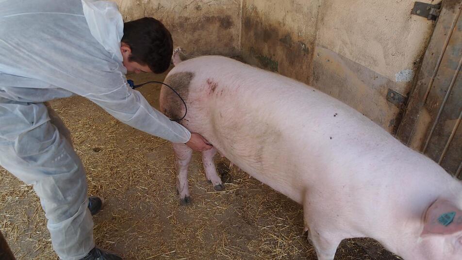 Eine Sau grunzt ihren Kommentar, wie eine Zustimmung, zu Henrik Giegers Feststellung: "Die ist trächtig." Mittendrin im Hof-Idyll geht es für den jungen Mann in weißem Schutzanzug und mit Ultraschallgerät, dem sogenannten Pregtone, in der Hand ums Ganze: Er legt die praktische Abschlussprüfung zum Landwirt ab.