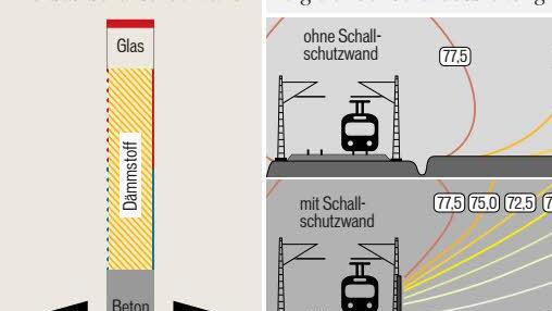 Es sei noch alles offen in Sachen Gestaltung, aber viele Glaselemente würden die Schall schluckende Wirkung der Wand mindern. Denn Glas reflektiere den Schall, so der Bahnsprecher und fügt hinzu: Über mögliche Bepflanzungen müsse man zum gegebenen Zeitpunkt reden.