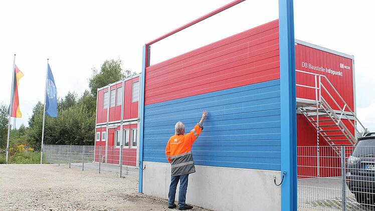 In den Farben der Gemeinde Bei Breitengüßbach wolle die Bahn am Infopunkt an der Güterhalle Beispielwände aufstellen, sagt Schneider. "Wir dürfen die gestalterischen Aspekte der Lärmschutzwände mitbestimmen", sagt Storath und fügt an: "Kommen werden sie in jedem Fall." Und tatsächlich am Infopunkt - es gibt viele an der gesamten VDE-Strecke - der Bahn in Breitengüßbach steht eine einzelne Lärmschutzwand.