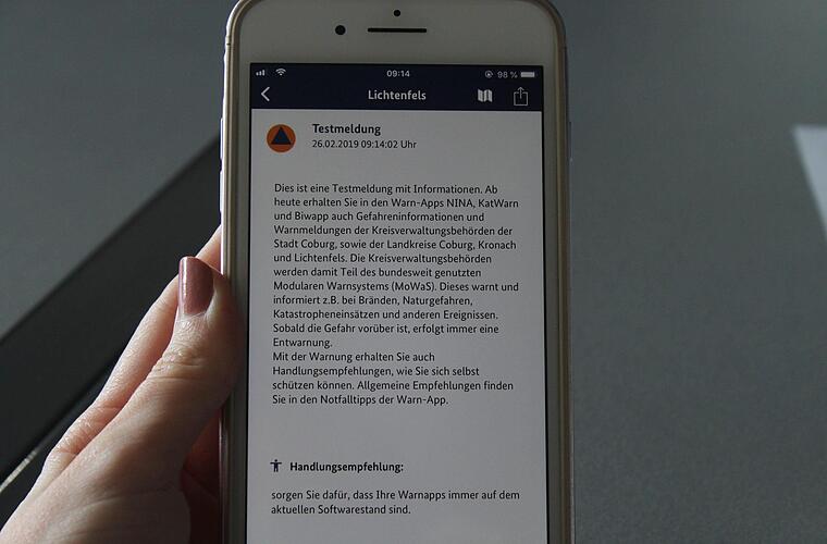 Die Informationen sind über die kostenlose Handy-Warn-App NINA abrufbar. Der Startschuss erfolgte bei der Versammlung des Zweckverbandes für Rettungsdienst und Feuerwehralarmierung Coburg im Landratsamt Lichtenfels.