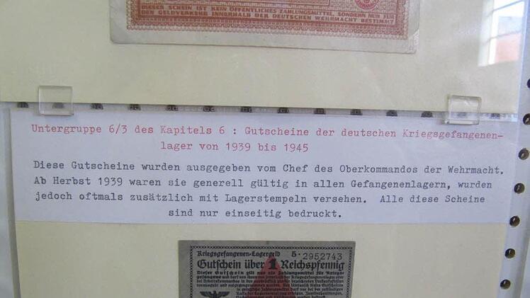 Gemeinsam mit dem Partnerverein aus dem thüringerischen Zella-Mehlis präsentierten die Lichtenfelser bereits im Eingangsbereich des geräumigen Saales eine Ausstellung mit 23 Schautafeln und unzähligen Exponaten. Eine große Geldscheinsammlung Deutschlands von 1900 bis 1948 einschließlich Noten der Alliierten Militärbehörden zeigte Geldscheine mit Mark, Rentenmark, Reichsmark, aus der Inflationszeit, Wehrmachts- und Besatzer-Ausgaben.