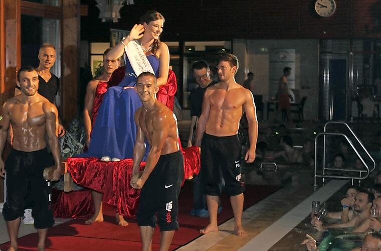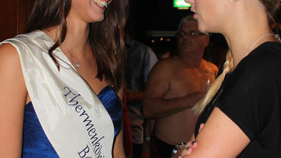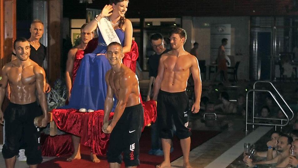 Die Herren im Anzug schwitzten, die Badegäste im Wasser staunten und applaudierten - und eine junge Frau strahlte: Katharina Pflaum aus Altenbanz wurde am Freitagabend die neue Thermenkönigin. Gegen sieben Mitbewerberinnen hatte sich die 20-Jährige aus dem Stadtteil Altenbanz in einem Casting durchgesetzt und wurde von vier Männern auf einer Sänfte hereingetragen. Doch auch Madeleine Zapf, die während der vergangenen zwei Jahre den Kurort und die Therme repräsentierte, strahlte. "Total entspannt" sei sie an diesem Abend und blicke auf eine schöne Zeit zurück. Die Therme werde sie natürlich auch künftig weiter gerne besuchen. Sämtliche Mitarbeiter hier habe sie kennengelernt: "Wir sind wie eine Familie geworden." Und Madeleine erklärte ihre Bereitschaft, auch weiterhin beispielsweise auf Messen für die Obermain-Therme aktiv zu sein, wenn sie gebraucht werde - vielleicht ja auch einmal mit ihrer Nachfolgerin