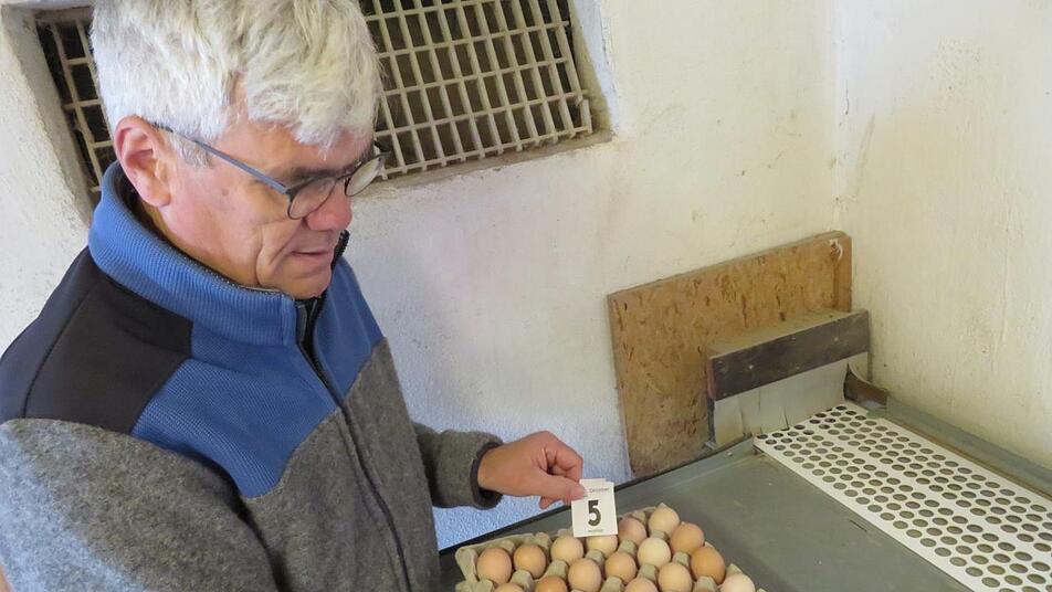 Doch das hat seinen Preis: langsameres Wachstum, geringerer Ertrag bei Fleisch und Legeleistung, höhere Futterkosten durch längeres Leben. Dem gegenüber steht die Tatsache, dass das Kükentöten vermieden wird, dass die Tiere stressfrei, gesünder und widerstandsfähiger leben. Die Verbraucher schätzen das. Sie sind bereit, für ein Ei mehr zu zahlen. 46 Cent kostet ein Stück, davon geht ein Cent in die Forschungsarbeit über ökologische Tierzucht. Abnahmeschwierigkeiten hat Bernhard Storath keine: Er verkauft Eier und Fleisch bei sich im Bio-hofladen. Weitere Abnehmer sind Naturkostläden, aber auch Rewe. Zweinutzungshühner hält er zum ersten Mal. Vielleicht hat es Zukunft.
