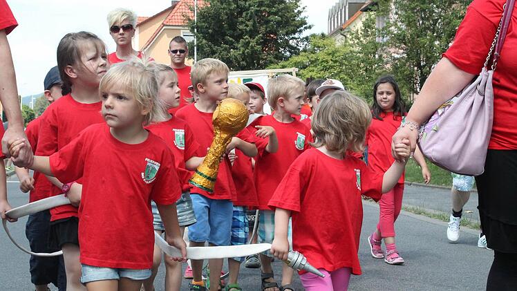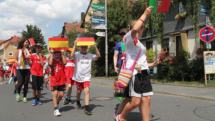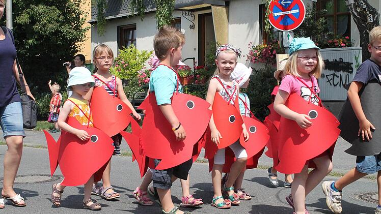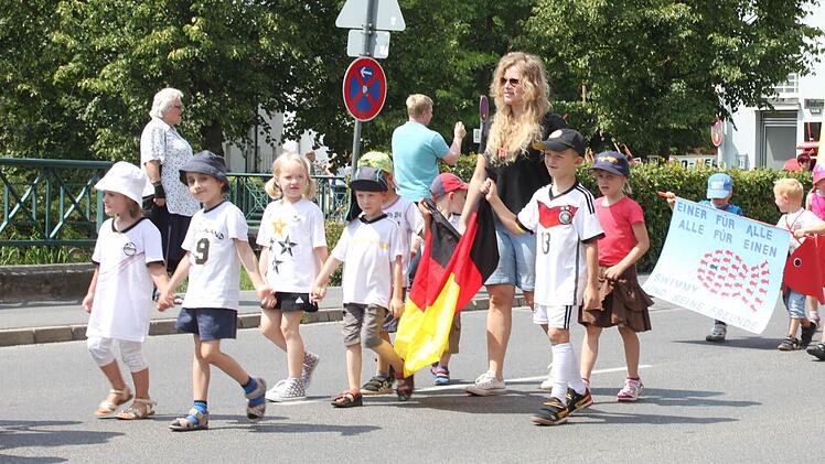Das Getuschel und Gewusel der Kinder vor dem großen Umzug beim Staffelsteiner Kinderfest war schon von weitem zu hören. Mit kleinen Fischkostümen, Bergsteigerkleidung oder Trikots und Fahnen der Fußball-WM hatten sich die Jungen und Mädchen herausgeputzt. Als es dann am Mittwoch losging, winkten und lachten sie den Zuschauern am Straßenrand entgegen.