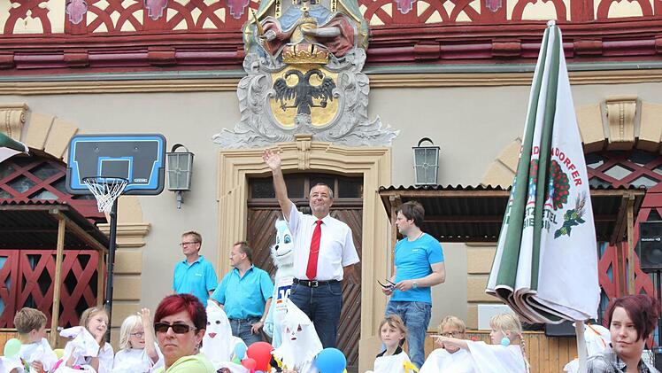 Für den städtischen Jugendbeauftragten Holger Then war das Kinderfest heuer eine Premiere. Die Planungen seien ab Mai im Rekordtempo gelaufen, sagt Then, der gerade noch eine Bierbank über die Straße schleppt. "Es sind acht Laufgruppen und Hunderte Kinder dabei. Nach meiner Einschätzung haben noch nie so viele mitgemacht", sagt Then. Er sei bei seiner Premiere ein wenig aufgeregt. Ob er denn an alles gedacht habe und ob alles klappe, fragt sich der Jugendbeauftragte wenige Minuten vor dem Umzug, der von der Bahnhofsstraße zum Rathaus ging.
