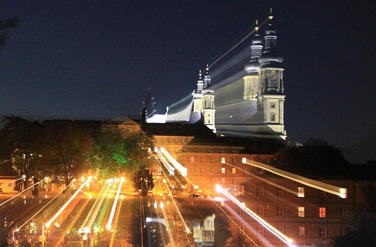 An der Klosterkirche wurde eine neue Lichtwurfanlage installiert. Zum Tag der Deutschen Einheit wird Kloster Banz erstmals angestrahlt - und künftig dauerhaft. Am Abend des 3. Oktober wird einmalig auch der Staffelberg beleuchtet sein.