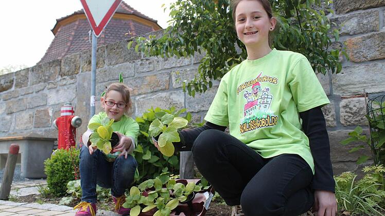 Sina und Carla Schmidt lächeln. "Ich bin eh gern draußen und mir gefällt es, wenn wir das Dorf verschönern", sagt Carla (12). Ihr Zuhause ist im Schatten des Schlosses. Dort, an der Schlossmauer, haben die beiden Mädchen ein Beet, um das sie sich kümmern müssen; fünf Meter lang, eineinhalb Meter breit.
