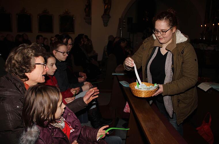 Im Verlauf der Konzertandacht wurden die Besucher aufgefordert, sich einmal Gedanken zu machen, wofür sie sich einmal Zeit nehmen wollen. Damit sie auch immer daran erinnert werden, teilte das Organisationsteam sogenannte Zeitbändchen aus. Die dann mit dem entsprechenden Vorsatz beschriftet um das Handgelenk getragen werden sollen. Anstelle eines Blickes auf die Uhr, soll das Bändchen seinen Träger immer an das Vorhaben erinnern. Abgenommen sollte es erst dann werden, wenn das Vorhaben umgesetzt wurde.