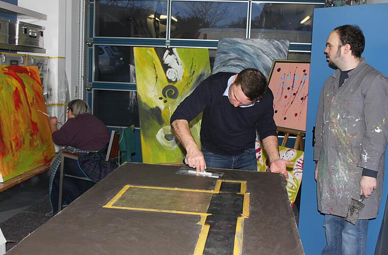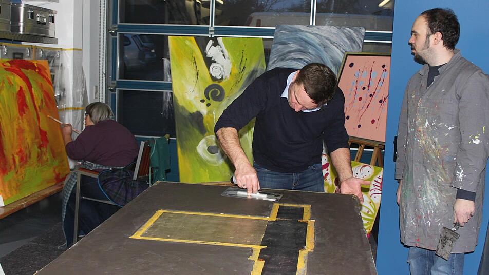 Kunst verbindet Menschen auf verschiedene Weise: beim Herstellen und Ermöglichen, aber auch beim Betrachten oder Erwerben. Ein gutes Beispiel dafür, wie Kunst verbindet und Freude macht, ist das Malprojekt des Rotary-Club Obermain. Club-Präsident Martin Vogt, von Beruf Malermeister, ist mit seiner Idee beim Heilpädagogischen Zentrum der Caritas (HPZ) in Lichtenfels gleich auf Zuspruch gestoßen. Das Angebot, in seinen Arbeitsräumen künstlerisch tätig zu sein, wurde ins Programmheft der Offenen Behindertenarbeit (OBA) aufgenommen. Die meisten derer, die sich meldeten, arbeiten in den Werkstätten St. Joseph, aber nicht jeder kennt den anderen. Nur etwa die Hälfte lebt in einem Wohnheim.
