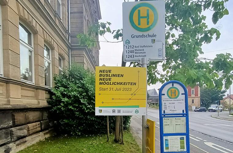 Mit Fahnen und gelben "Nasen" machen die neuen Buslinien im Landkreis Lichtenfels auf sich aufmerksam.