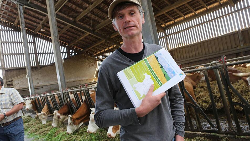 Die rund 40 Milchkühe von Klaus Gründel lassen sich nicht aus der Ruhe bringen. Sie liegen gemütlich auf ihren Strohhaufen und kauen gemächlich ihr Gras. Auch die Hofkatzen sind vom Trubel im Bad Staffelsteiner Ortsteil Krögelhof wenig beeindruckt. Eine verspeise gelassen einen Vogel. Rund ein Dutzend Menschen, darunter Landwirte, Vertreter von Behörden, Stadt und Presse, sind auf den Biohof von Gründel gekommen.