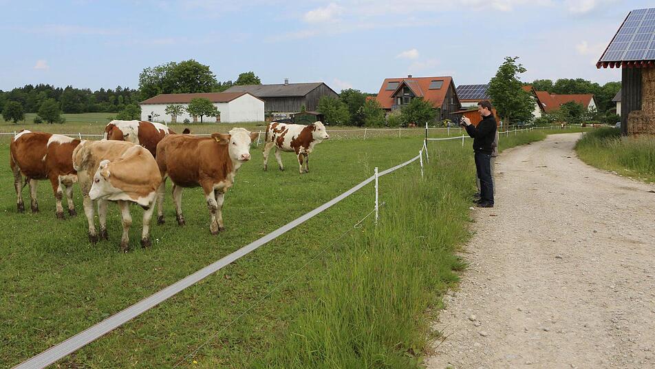 Das weiß auch das AELF und das bayerische Landwirtschaftsministerium. Das will mit dem Projekt Bioregio 2020 die Erzeugung bayerischer Ökoprodukte in sechs Jahren verdoppeln. Mit einem Betriebsnetz, einer Okö-Fachschule in Weilheim und fachlichem Wissen von erfolgreichen Biobetrieben will die Staatsregierung dieses Ziel erreichen. Klaus Gründel plant derweil eine zusätzliche Fläche für seine Kälber. Im Stall und auf der Wiese: glückliche Kühe.