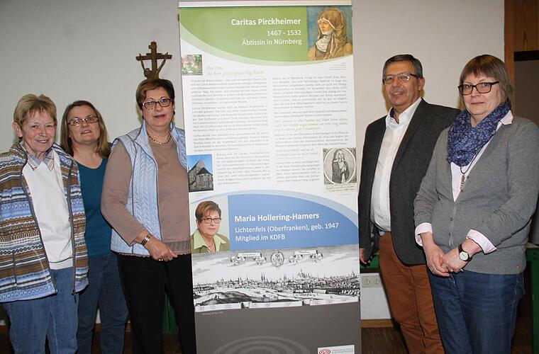 Deshalb wurde die Ausstellung auf Initiative von Maria Hollering-Hamers, der Sprecherin des Aktionsbündnisses der Lichtenfelser Frauengruppen, um ein Roll-Up erweitert, auf dem das Leben der Nürnberger Äbtissin Caritas Pirckheimer beleuchtet wird. Im Unterschied zu den Frauen der Reformation wählte Pirckheimer einen anderen Weg. "Sie setzte sich intensiv mit der neuen Lehre auseinander und stimmte in vielen mit den reformatorischen Gedanken überein. Trotzdem entschied sie sich, beim "alten Glauben" zu bleiben - als katholische Nonne", erläutert Hollering-Hamers.