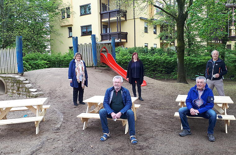Um dem Kindergarten die für 2020 in Aussicht gestellten Sitzgruppen wenigstens zur wärmeren Jahreszeit 2021 zur Verfügung stellen zu können, entschlossen sich die Aktiven Bürger zur Selbsthilfe. "Dreimal streichen und zusammenmontieren waren innerhalb weniger Tage – unter Einhaltung der Pandemiebestimmungen – geschafft", heißt es in der Mitteilung.
