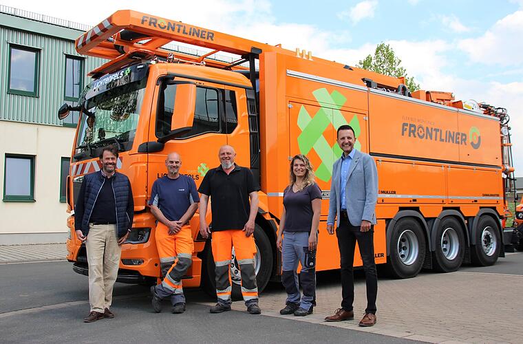 Der neue Kanalspülwagen der Stadt Lichtenfels wurde von Stadtbaumeister Gerhard Pülz, den Mitarbeitern der Lichtenfelser Kläranlage Thomas Kochhafen und Markus Meußer, Leiterin der Kläranlage ...