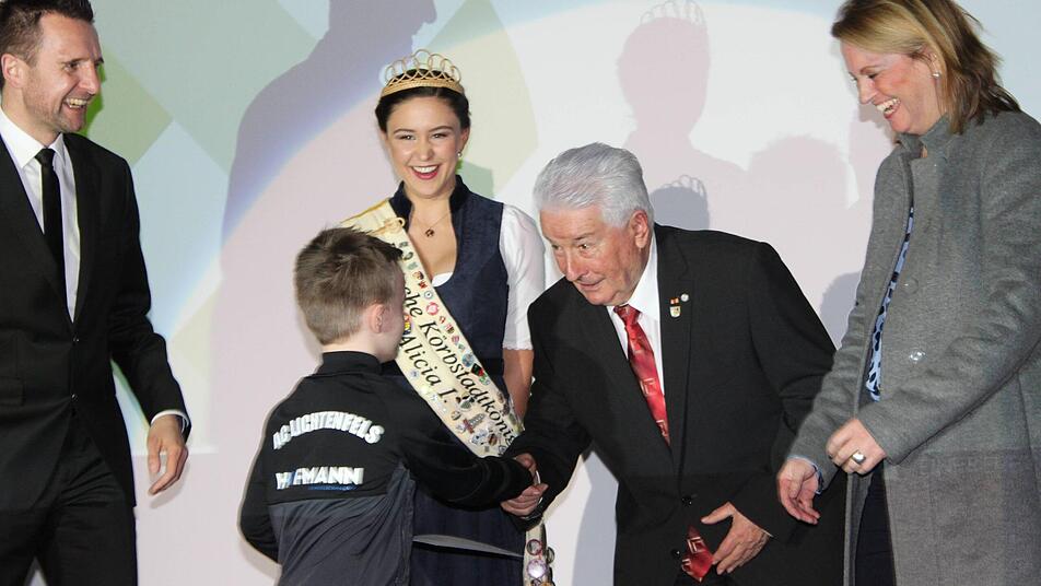 In der Stadthalle bekamen Einzelpersonen oder Teams für Titelgewinne aus dem Jahr 2019 oder auch noch aus 2018 eine große Bühne. Neben dem Rathauschef gratulierten seine beiden Stellvertreter Sabine Rießner und Winfried Weinbeer sowie Korbstadtkönigin Alicia I.
