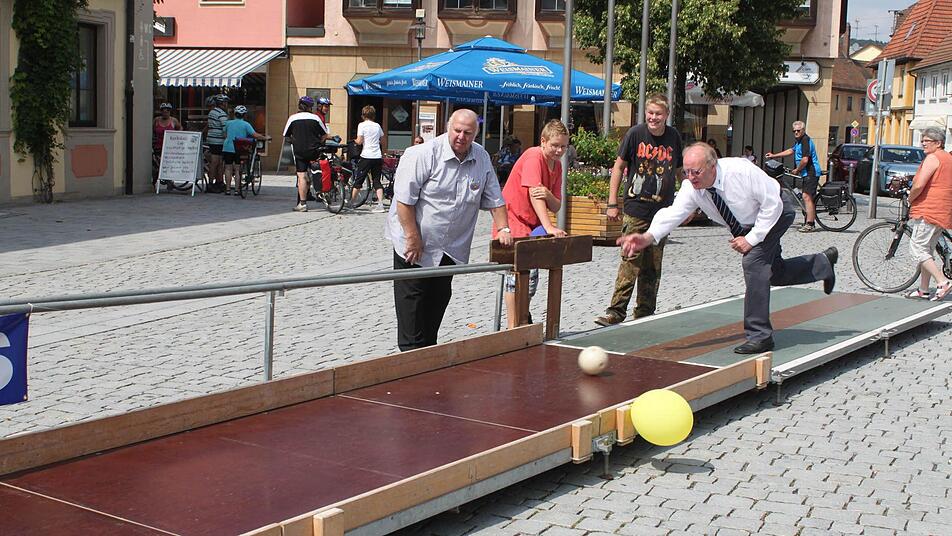 Roland Schunk ist zufrieden. Die transportable Kegelbahn, die die Sportkeglervereinigung Lichtenfels (SKVL) vor dem Rathaus aufgebaut hatte, sorgte für Aufmerksamkeit. Zumindest bei so vielen, dass der Vorsitzende von einer "relativ guten Resonanz" sprechen mochte.