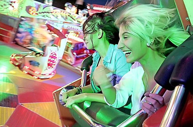 Drei Euro Eintritt, Fahrtdauer vier Minuten und zehn Sekunden. Handgestoppt. "Der Preis ist in Ordnung", befindet Isabell. Die Kauffrau für Versicherungen und Finanzen hatte Spaß, wenngleich die Drehungen "zu low" seien, zu wenig rasant. "Das Überschlagen liebe ich", stimmt ihre Freundin Janine ein. Sie ist Fachangestellte in der Lungenmedizin und ihr "fehlte etwas das Adrenalin". Aber der Preis habe gepasst, und so verständigen sich die Mädels auf Note 3 bzw. 4 für Nervenkitzel, 1 für Spaß und 1 für Optik. Dann zieht es die Probanden weiter zum Riesenrad.