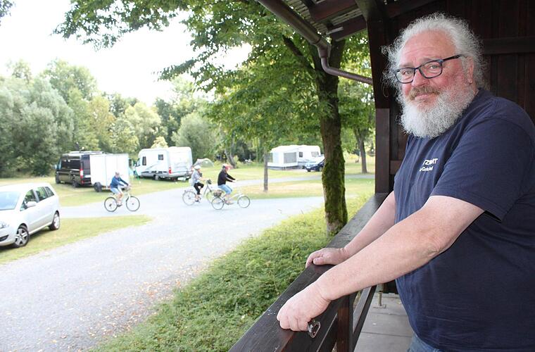 Den Karl kennt man hier. Schließlich ist Karl Gröschel in der zehnten Saison Platzwart am Maincamping. Wer schon mal da war - und das sind viele - hat sich die Gestalt des graubärtigen Mannes bestimmt eingeprägt. Wer neu ist, wird es rasch tun. Der Empfangschef wirkt ausgeglichen und gemütlich, hat für jeden ein freundliches Wort. Wenn er über das idyllisch gelegene Areal direkt am Flussufer, nahe dem Badesee geht, bleibt das nicht unbemerkt. Ein nettes Hallo, ein Morgengruß, hie und da auch eine Frage zu geplanten Unternehmungen oder Erledigungen.