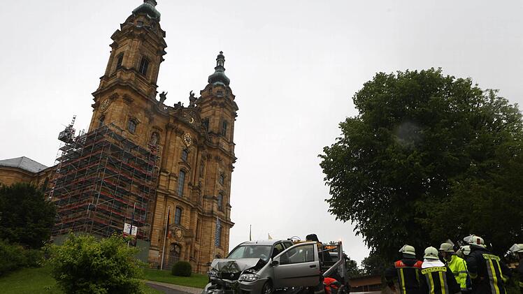 Ein tragischer Unfall, nur wenige Meter unterhalb der Basilika Vierzehnheiligen, ereignete sich zur Mittagszeit. Ein 64-jähriger Lichtenfelser erlitt in seinem Fiat einen Schwächeanfall und verlor das Bewusstsein. Das Auto rollte führerlos im Gefällbereich über eine Wiese und prallte frontal gegen eine Linde.