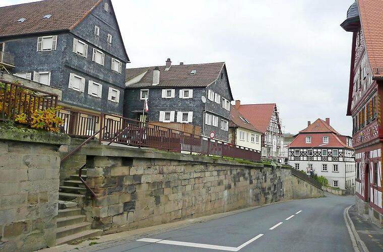Dennoch betont er: "Die Ampel hat ihren Sinn." Der Sinn jener Vorampel, deren Schaltung mit der Engstellenampel am Torhaus abgestimmt ist, ist es, das Schlangestehen und Anfahren am Berg der Ortsdurchfahrt zu vermeiden. Die Fassaden der Häuser "Am Flecken" leiden unter der Verschmutzung, die der Straßenverkehr mit sich bringt.