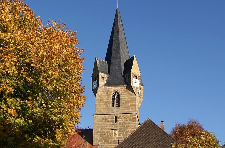 Aus diesem Anlass lohnt sich ein Blick in die lange Kirchenhistorie in Döringstadt. Bereits 1412 errichtet wurde der Kirchturm, wie die Inschrift auf der Ostmauer verrät: "MCCC darnach Ym XII jar wart der pau am nächsten Sunntag nach unseren herrn lychnamstaga angehoben". Die ältesten erhaltenen Teile des Gotteshauses sind die im unteren Bereich des Turmes verarbeiteten, noch vom um 1325 entstandenen Vorgängerbau stammenden Steine. Das heutige Kirchenschiff entstand 1716. Die älteste der drei Glocken wurde 1516 gegossen, erschallt somit seit einem halbem Jahrtausend - wirklich beeindruckend.