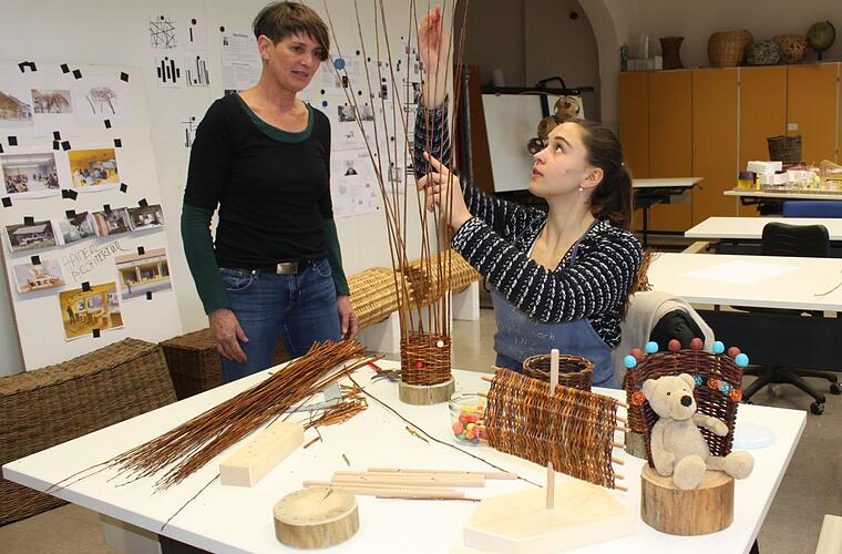 Mit einer ersten Übungseinheit für Alicia Vetter wurde am Montag an der Fachschule gestartet. Schließlich möchte sie ja nicht nur mit Dirndl und Krönchen auf dem Kopf bei den Grundschülern vorbeischauen, sondern selbst assistieren können. Verstärkt wird das Team von angehenden Flechtwerkgestalterinnen aus dem zweiten Ausbildungsjahr.