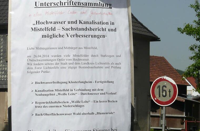 Eine Unterschriftensammlung in den Mistelfelder Geschäften und Gastwirtschaften soll der Forderung nach einer Lösung zum Schutz vor Hochwasser mehr Gewicht verleihen.